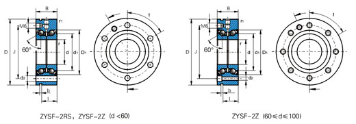 ZYSN和ZYSF系列推力角接触球轴承的结构如下图: